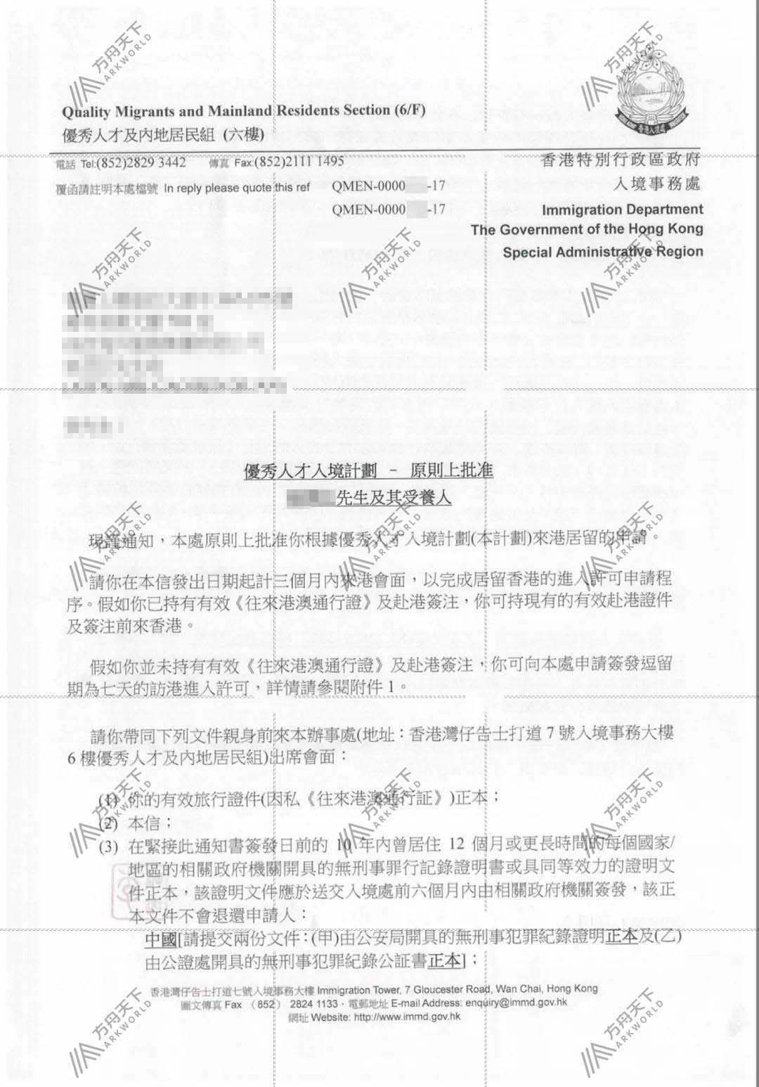 2018年香港优才第一季度筛选获批客户顺利拿到批函!!