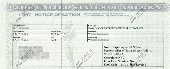 以下为美国移民局杰出人才移民批准书: