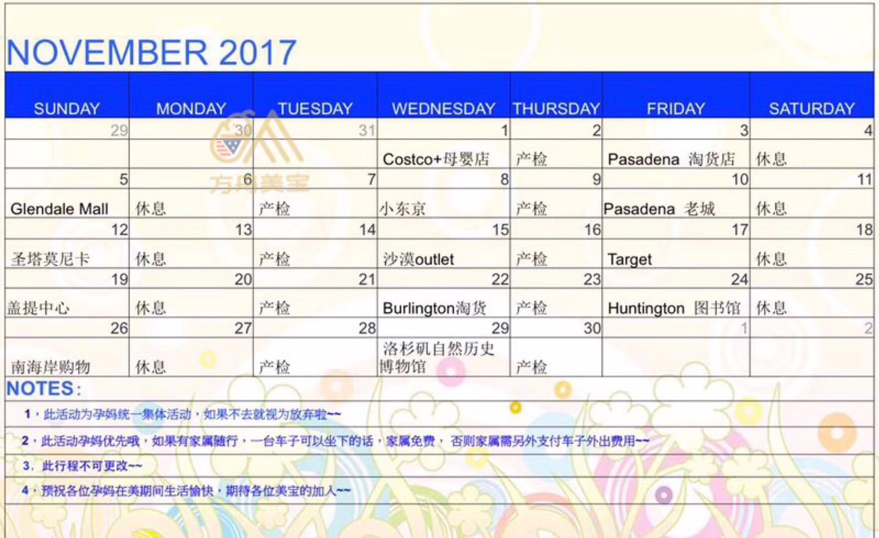 附上11月出行计划,要预定的抓紧哦,年底入境的妈妈比较多……