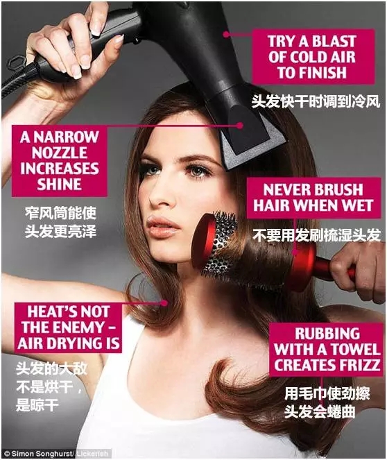 ▲摩尔博士说晾干比吹干头发更损害发质