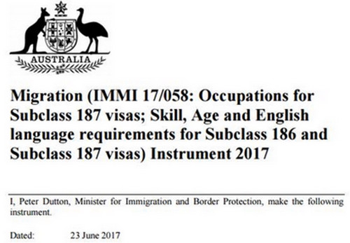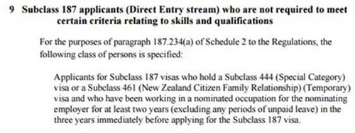 今天,当我们移民专业人士逐条查阅186和187类别签证移民条例的时候,发现所有最新的关于新西兰公民申请者的秘密,都藏在了澳大利亚政府2017年6月23日发布的一篇法律文书(Legal Instrument)里面。这篇长达将近30页的重要的法律文书,从2017年7月1日开始生效,包含了所有新西兰公民申请者通过186和187类别签证获取澳大利亚永久居民的时候所拥有的特殊优待。