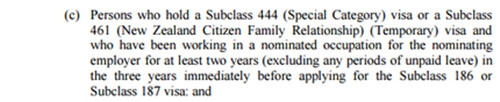 问题二:既然新西兰公民需要为提名雇主工作两年,为什么他们不能选择申请186(过渡)类别或者187(过渡)类别呢?