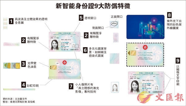 2018年第四季起,香港市民将更换有9项防伪特征的新一代智能身份证。