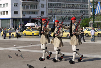 到宪兵广场看卫兵交接仪式,感受希腊军人的风采。