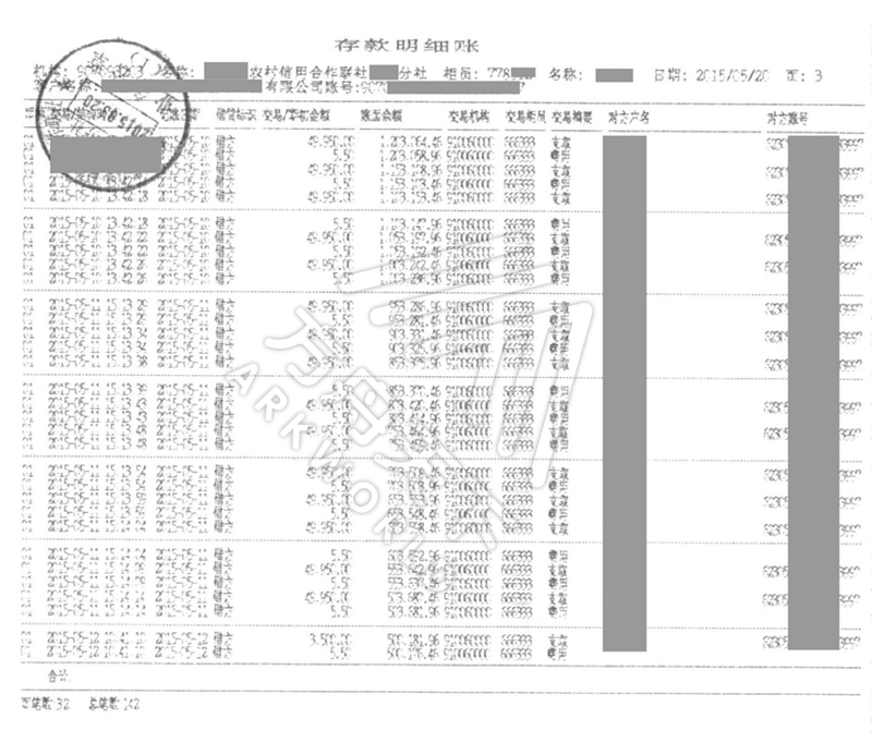 3.部分转账流水-证明叔叔确实是从公司借款RMB 350万后转账至个人账户(受政策管制,此350万人民币不是1笔而是分为71笔转出)
