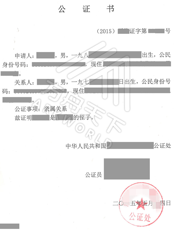 1.亲属关系公证-证明资金来源人与副申请人是叔侄关系: