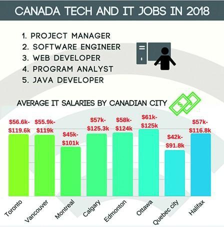 Randstad公司称﹐加拿大的信息科技业聘用了48.8万人。2017年新增职位1.15万个。这些新的职位中﹐将近5000个来自多伦多,特利尔提供了另外2000个。
