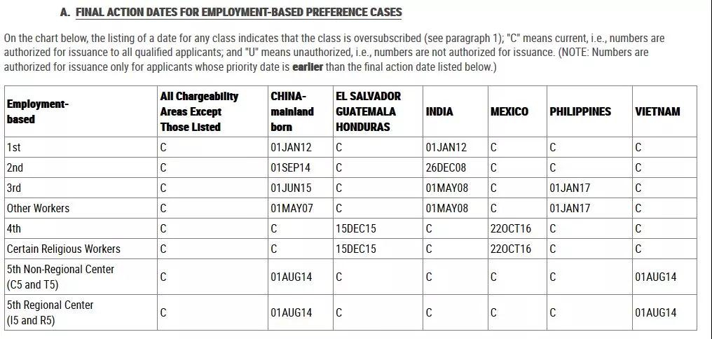 我们先来看看国务院的排期表,然后静等USCIS的排期表(通常都是在国务院的表出来的一周以内会出来的,我们会在第一时间给大家分析的)。