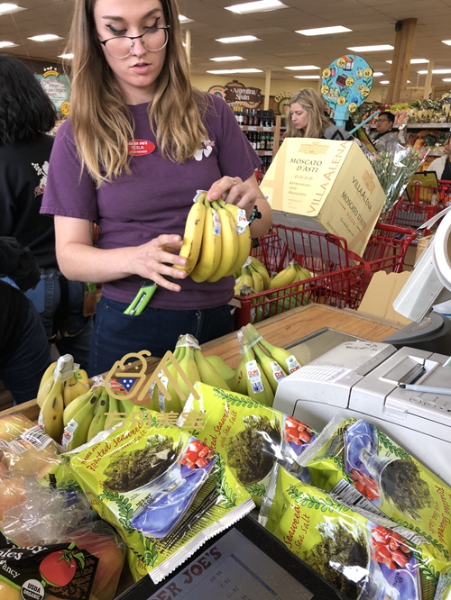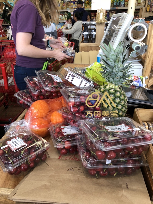 【方舟美宝】月子中心水果采购日,画着奇怪眼线的收银员正在认真清点香蕉的数量,因为有机香蕉是按根数卖的,我们提供给妈妈们的水果,牛奶,果汁,蔬菜,蛋类全是有机的!