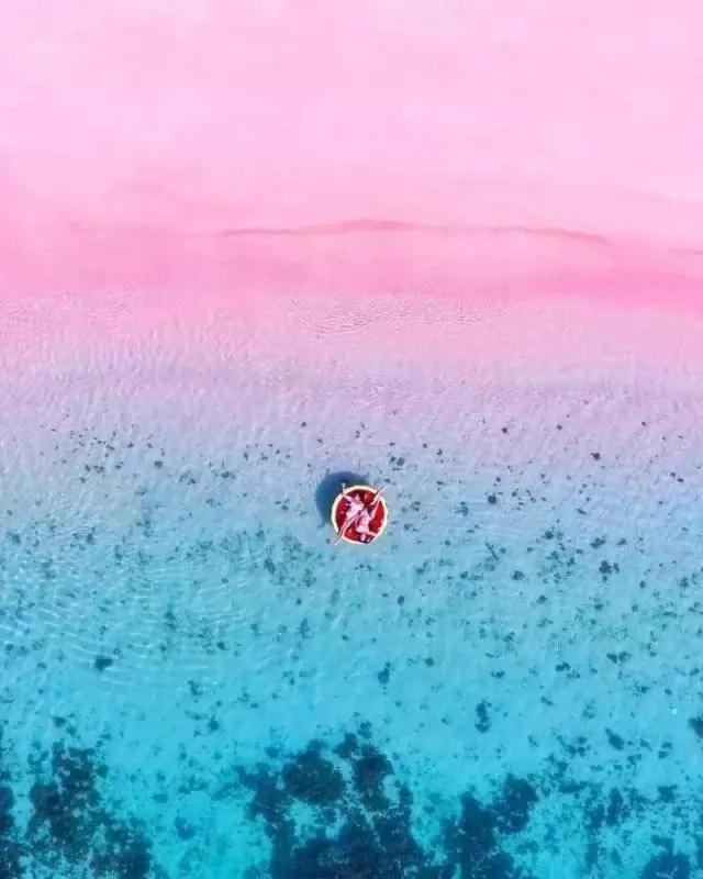 安提瓜和巴布达的西岸延绵着一个粉色沙滩,上面有部分区域覆盖着粉色细沙,与蓝色的海水组成了犹如梦境的图画。