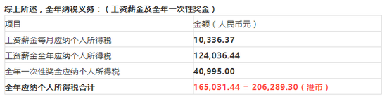 3.综上所述,全年纳税义务:(工资薪金及全年一次性奖金)
