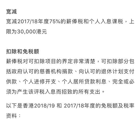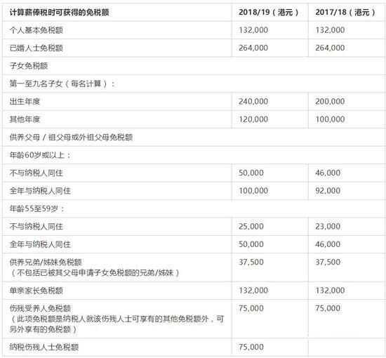由2018/19年度开始,薪俸税边际税阶由45,000港元增至50,000港元,并由4个税阶增加至5个,边际税率分别调整为2%、6%、10%、14%及17%。