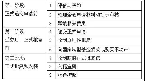 入籍格林纳达同样可以大致分为三个阶段,其中每个阶段可以具体分为三个步骤,见下表: