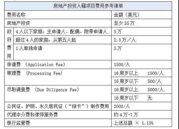 如果申请人选择投资格林纳达政府批准的房地产项目,费率参考下表: