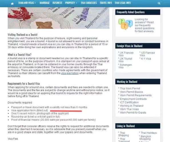 泰国:申请落地签需提供有效期不少于6个月的护照