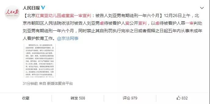 还记得1年前的某幼儿园虐童事件吗?仿佛现实版《熔炉》,一度让家长们人心惶惶。在2018年即将结束之际,该幼儿园虐童案 终于迎来了一审宣判