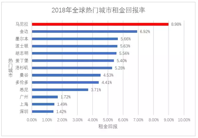 据2018年的数据显示,菲律宾租金回报率高达7.68%,亚太地区租金回报率菲律宾排名第一。而马尼拉作为菲律宾首都,众多CBD聚集地,国家经济最发达地方,其租金回报率更是引领菲律宾全国。