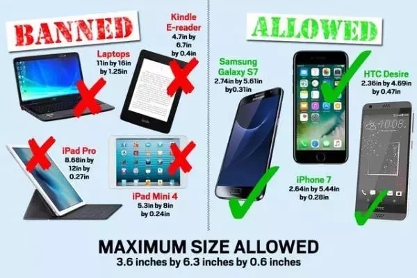 加强对赴美航班旅客随身所携带大于手机的电子产品(如平板、笔记型电脑、电子书、DVD播放机、游戏机及相机等)实施检查,7月17日起已实施。