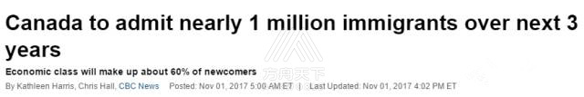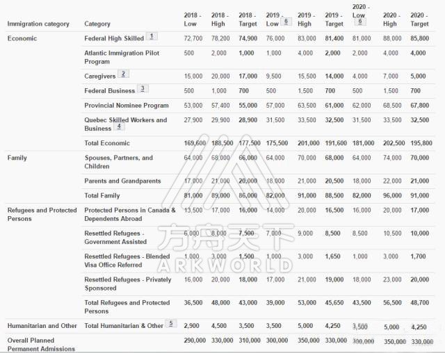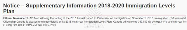 1)2018年,新移民配额将攀升至31万人。到2019年,这一数字将达到33万,到2020年将达到34万。